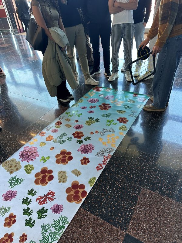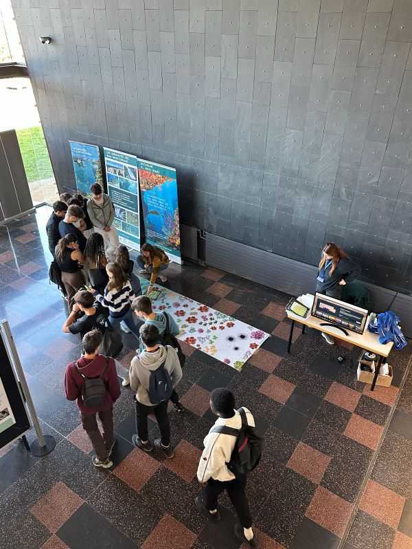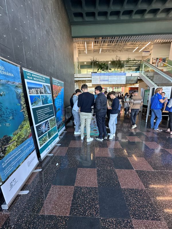 I durant la Jornada de Sant Albert, patró dels estudiants de ciències, la Universitat de Girona organitza activitats per a estudiants preuniversitaris que encara han de definir la seva carrera acadèmica. Des del grup de recerca cada any tenim un estand amb un taller sobre els boscos marins, les metodologies de mostreig, les amenaces a les quals s’enfronten i la importància d’aquests. És un taller dinàmic on primer l’alumnat va passant pels roll-ups, després exemplifica un mostreig del fons marí amb material real sobre una lona amb il·lustracions de fons bentònic i finalment posa a prova tot l’aprenentatge amb un Kahoot.