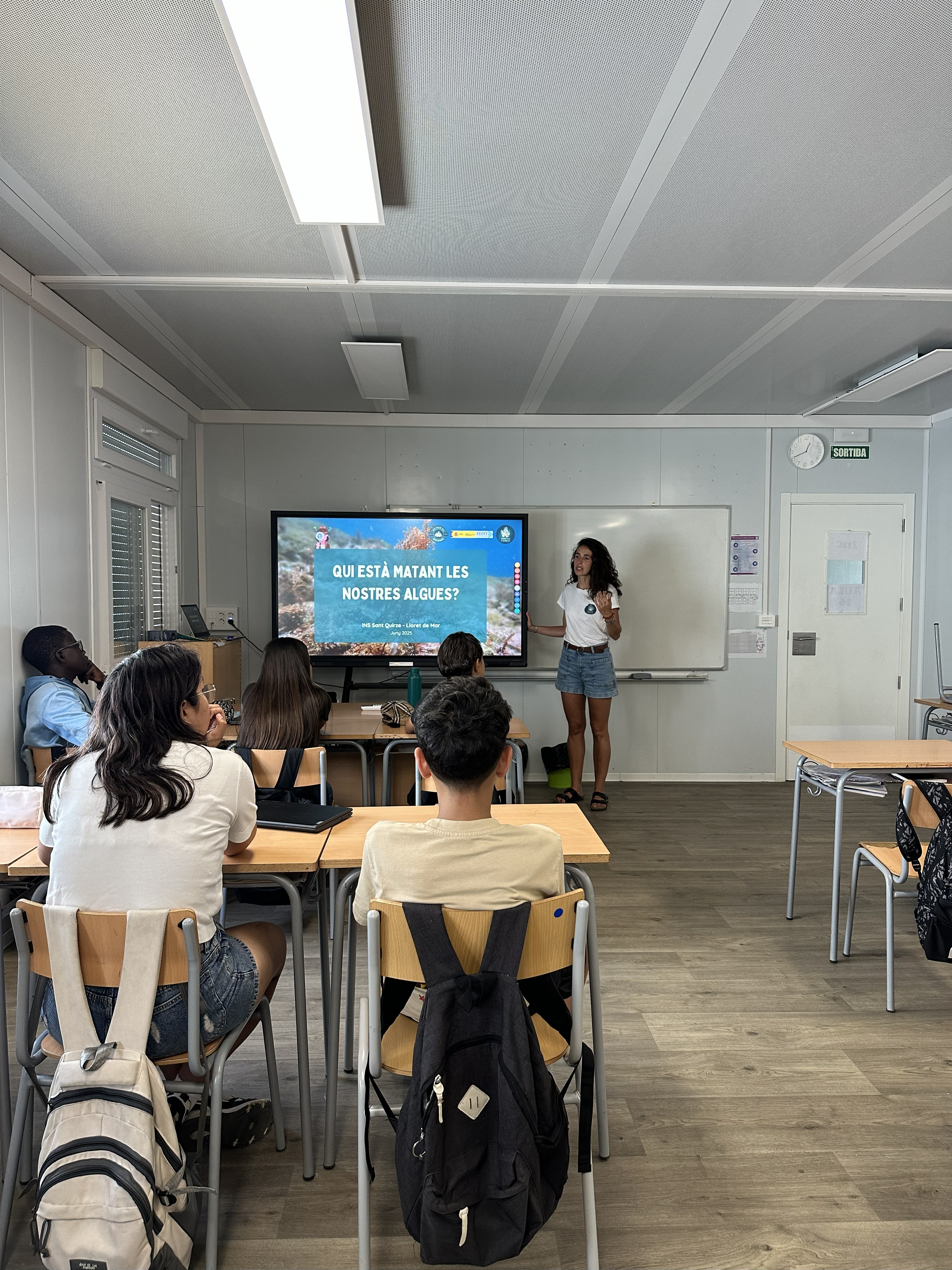 Realitzem tallers de divulgació científica enfocats en les algues formadores de boscos marins a través d’un joc de “true crime”. Aquest taller s’anomena “Qui està matant les nostres algues”. La dinàmica consisteix en començar per una xerrada participativa on es parla de les funcions i la importància de les algues i els boscos marins en l’ecosistema marí i dels perills als quals fan front. Es divideix l’alumnat en petits grups i a través de diferents “escenaris d’un crim” han de descobrir quina pertorbació han patit les algues a cada escenari. Llavors es fa una posada en comú i s’arriba a unes conclusions finals."
